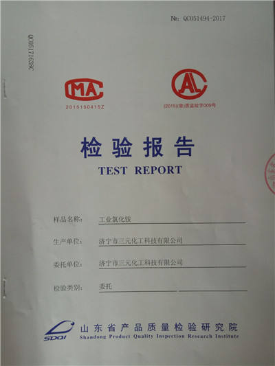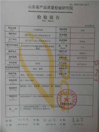 2017氯化铵第三方山东省产品质量检验研究院检验报告