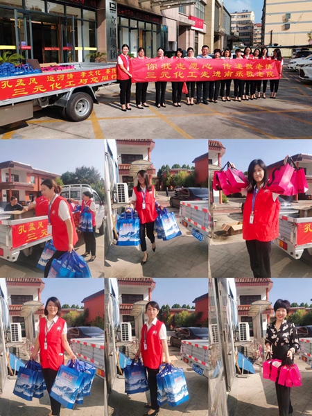 66位老人,66份礼物,15个人的爱心汇聚成了这次见面。三元化工营销团队提前一天就开始准备给老人们的节日礼品,亲手包装好了每一份手提袋。一大早所有员工着装整齐踏上了这次的敬老之旅。